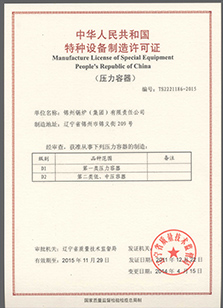 集團(tuán)公司具有A級(jí)鍋爐制造許可證;D級(jí)壓力容器制造許可證;1級(jí)鍋爐安裝、改造維修許可證;壓力管道安裝許可證;50t級(jí)起重機(jī)安裝許可證。錦州鍋爐有限責(zé)任公司、錦州冠達(dá)鍋爐容器制造安裝…